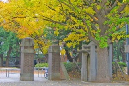 明治の世には競馬場 大正時代は陸軍の 工兵学校ありしとて 今は正門残るのみ