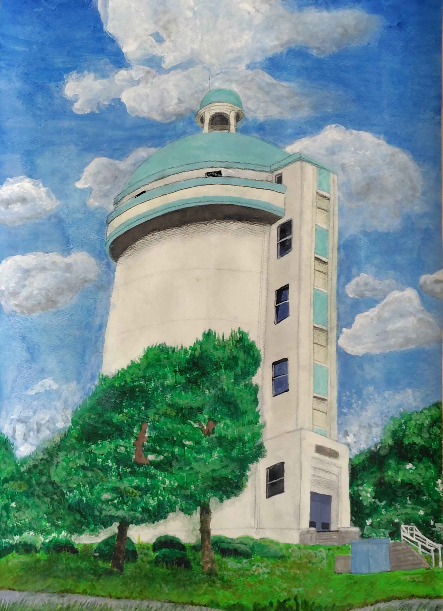 観光絵画展2025 市長賞「栗山配水塔」