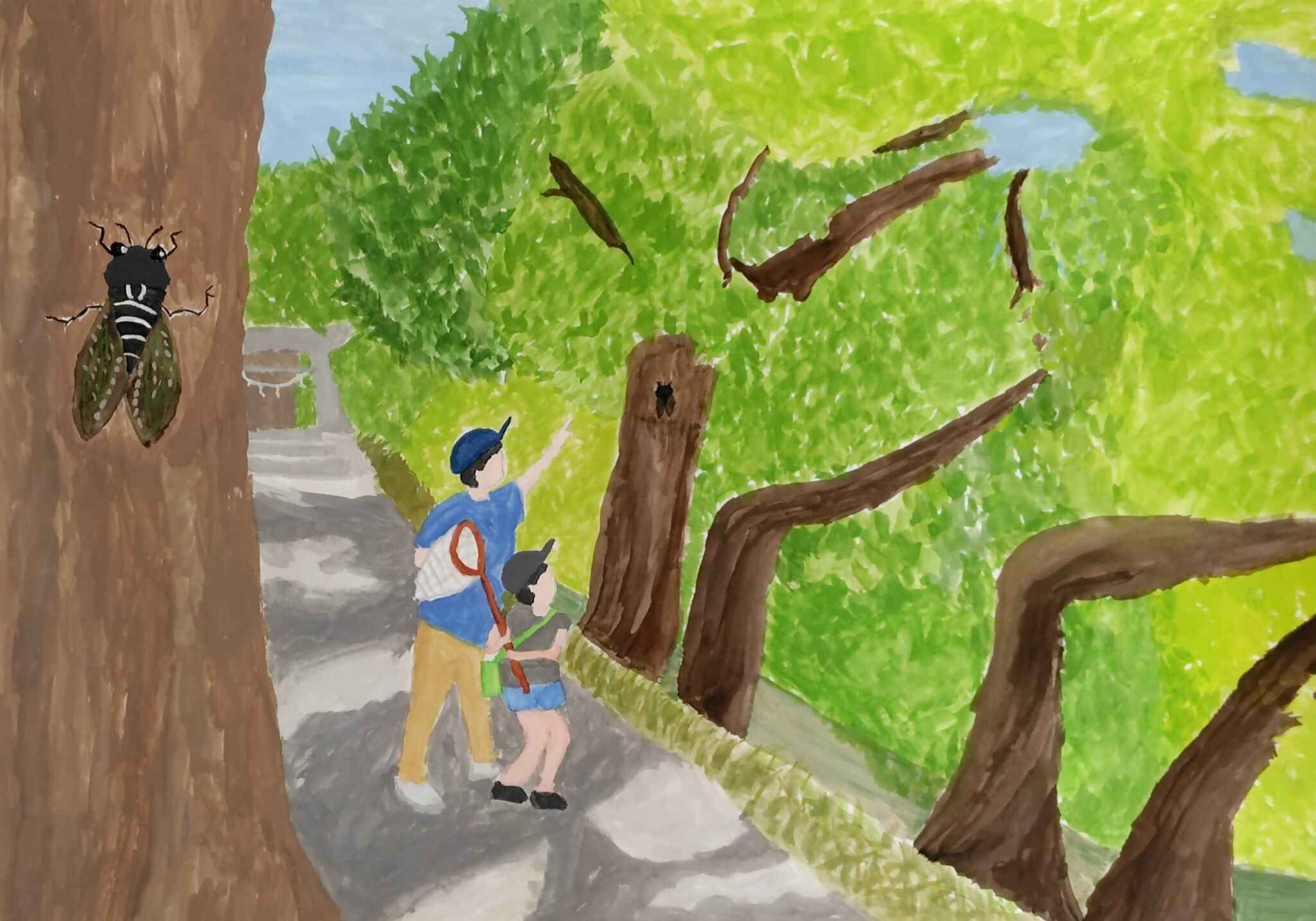 観光絵画展2025 市長賞「坂川沿いでセミとり」