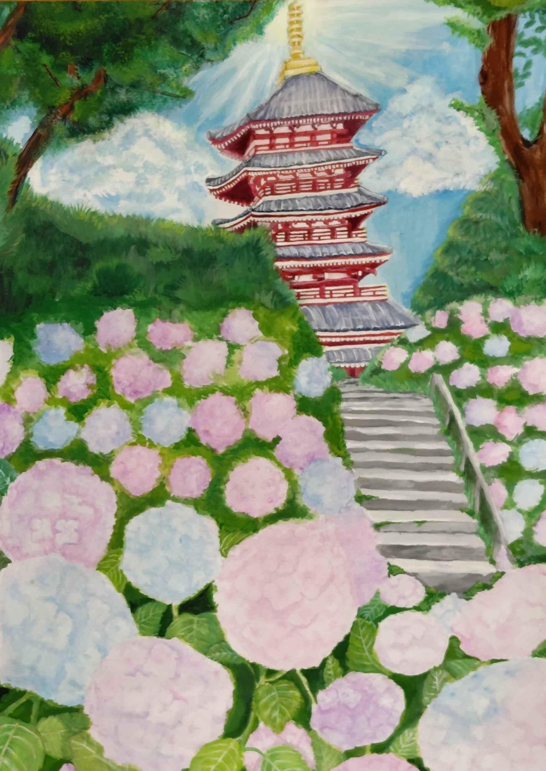 観光絵画展2025 観光協会会長賞「あじさい寺」