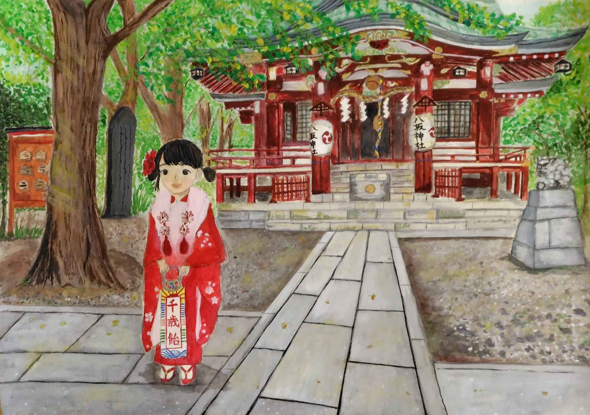 観光絵画展2024 観光協会会長賞「松戸神社」